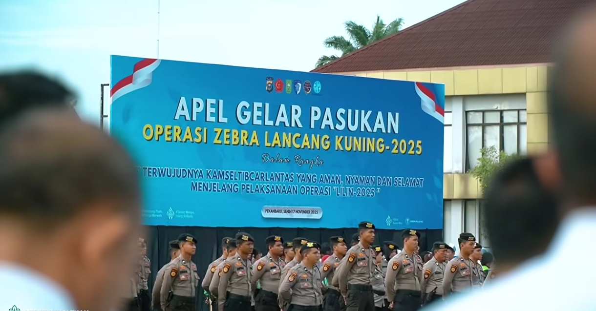 PEKANBARU, Muaramedia.com – Direktorat Lalu Lintas Polda Riau bersama seluruh Polres jajaran resmi menggelar Operasi Zebra Lancang Kuning 2025 selama 14 hari, mulai 17–30 November 2025. Operasi ini diawali dengan Apel Gelar Pasukan yang dipimpin Kapolda Riau Irjen Pol Dr. Herry Heryawan di halaman Mapolda Riau, Senin (17/11).